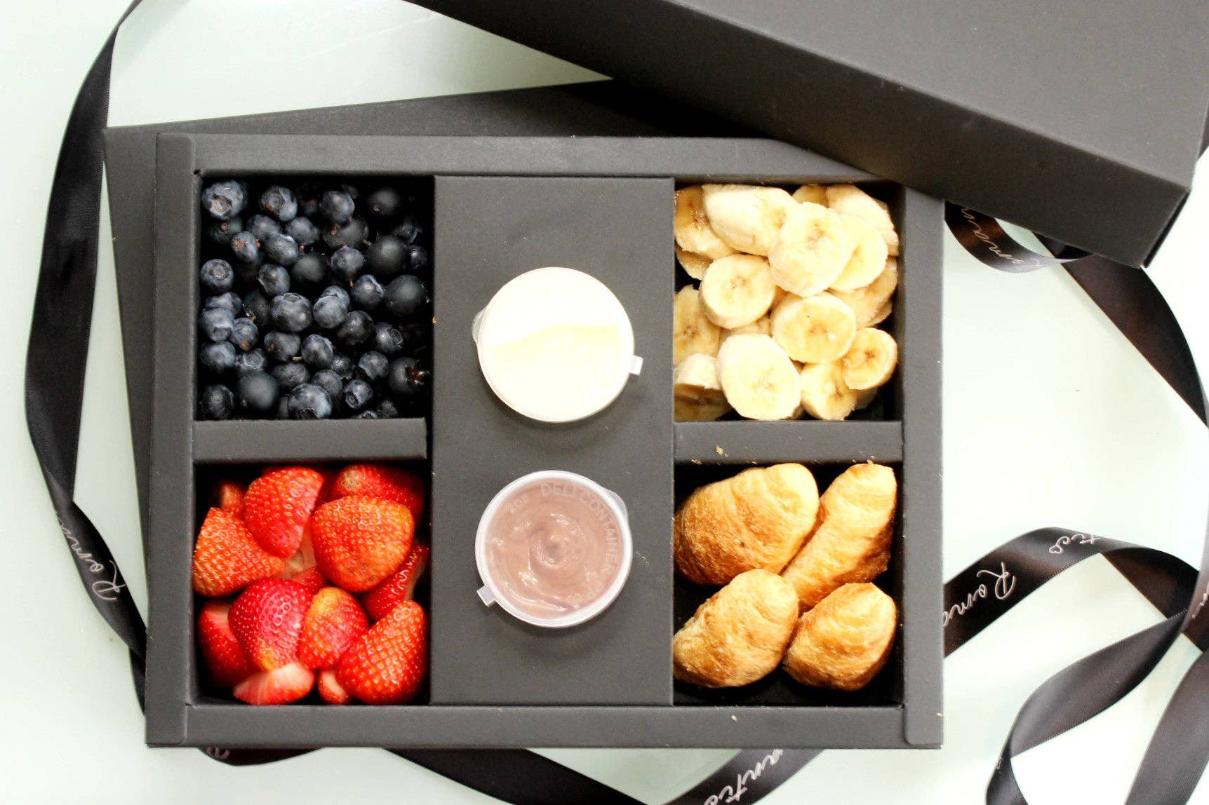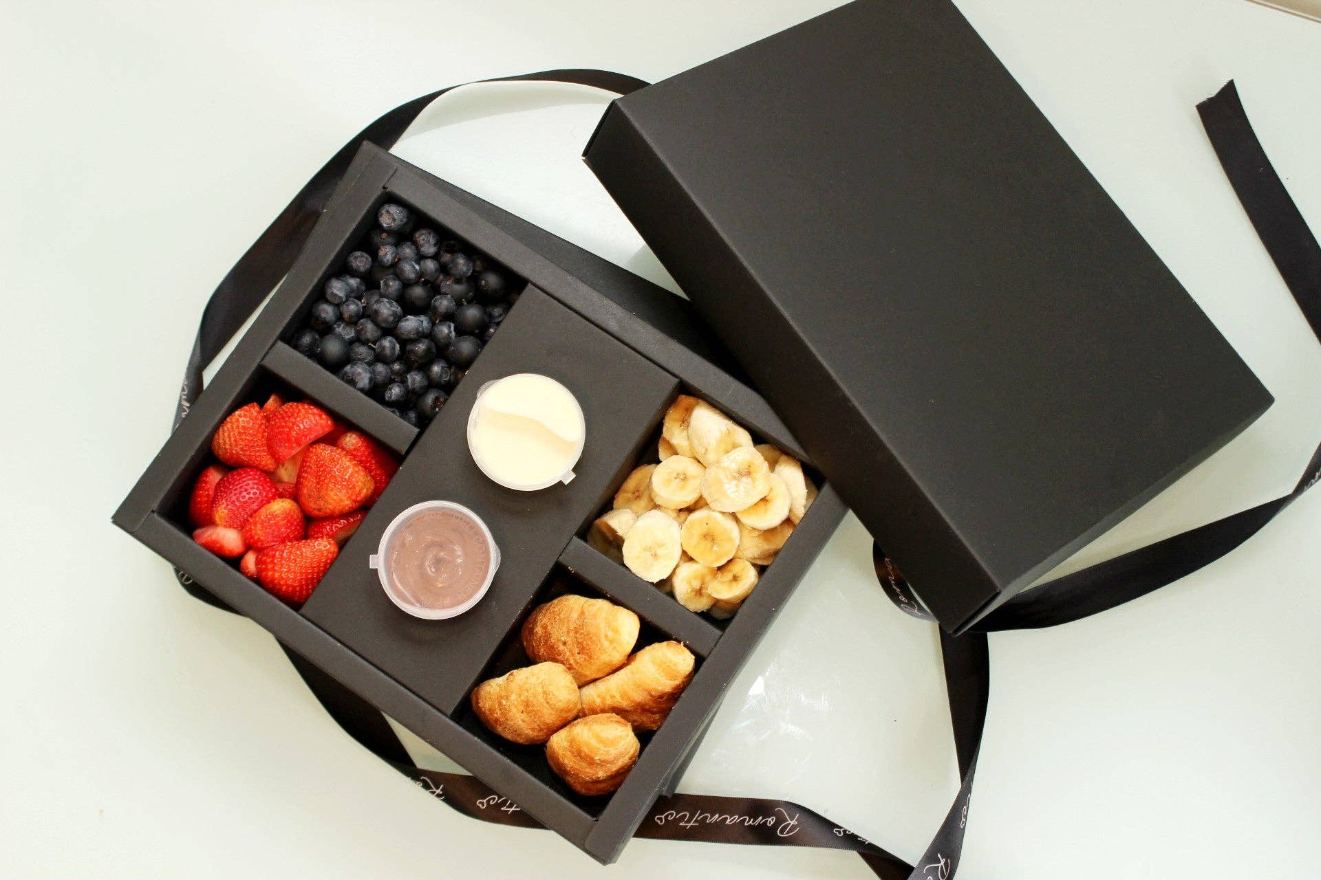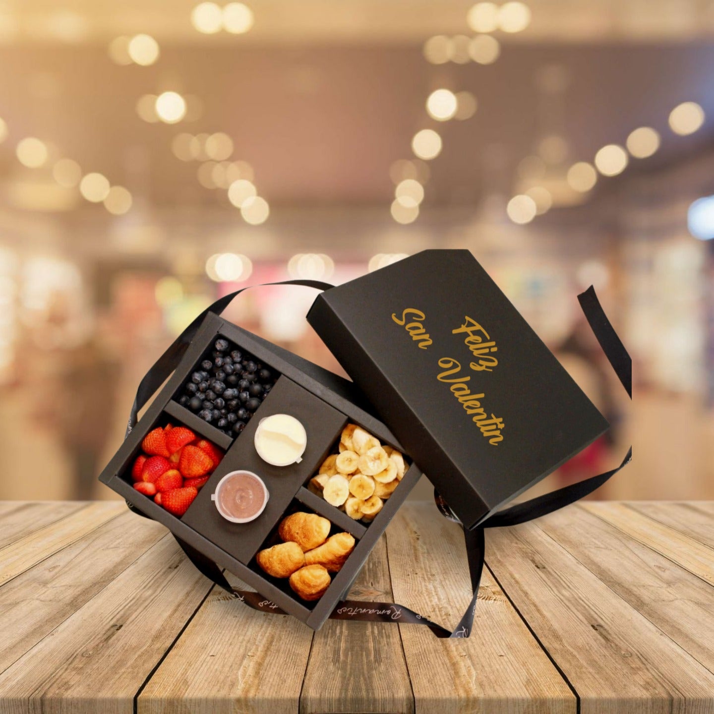 ¡Sorprende a esa persona especial con nuestro delicioso Desayuno Personalizado! Elige 4 frutas y 2 salsas, como chocolate y leche condensada, para un desayuno único y romántico. ¡Además, personalízalo con una dedicatoria en la tapa! El regalo perfecto para expresar amor por las mañanas.