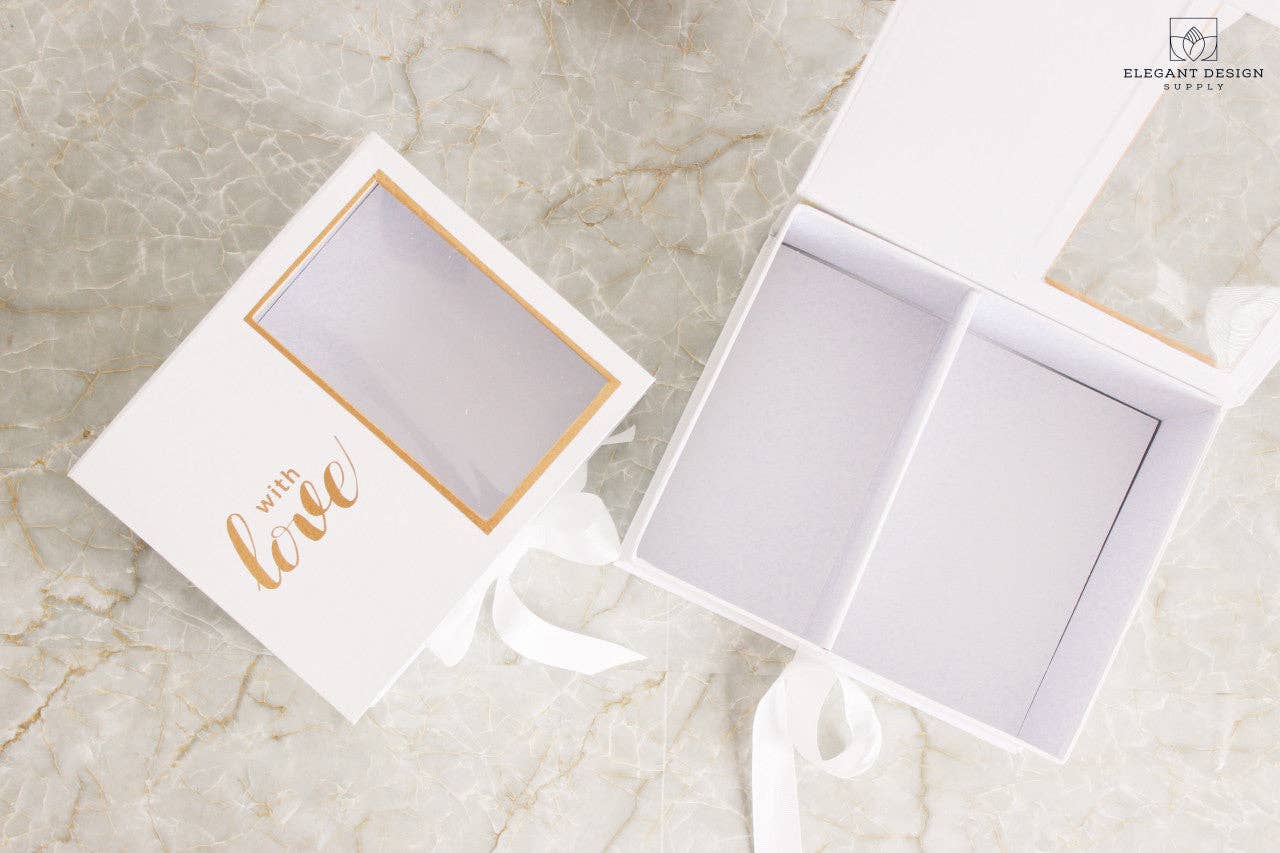 Deje una impresión duradera con esta caja de flores «With Love» de dos secciones. Cuenta con dos secciones distintas con varios colores para mostrar tu lujoso arreglo floral o de regalo. Es perfecto para flores frescas, chocolates o incluso fresas con chocolate.