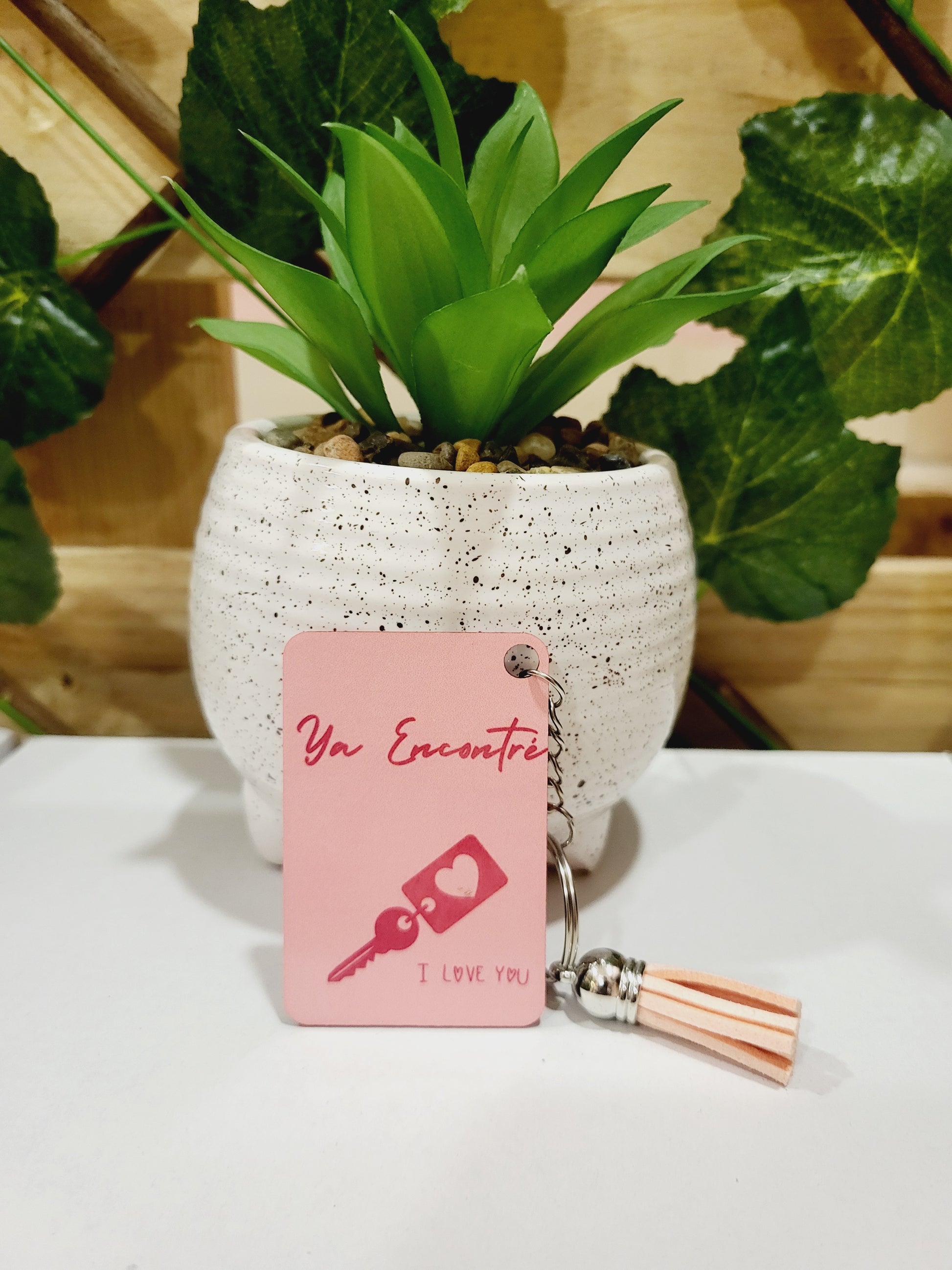 Llavero Te Encontre Con el título de tu canción favorita, este hermoso llavero es un recordatorio de tu amor y pasión compartida. Mantenga sus llaves elegantes y a mano con este precioso accesorio.
