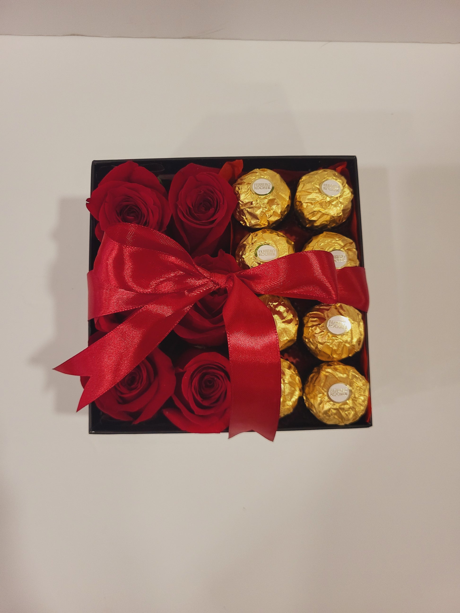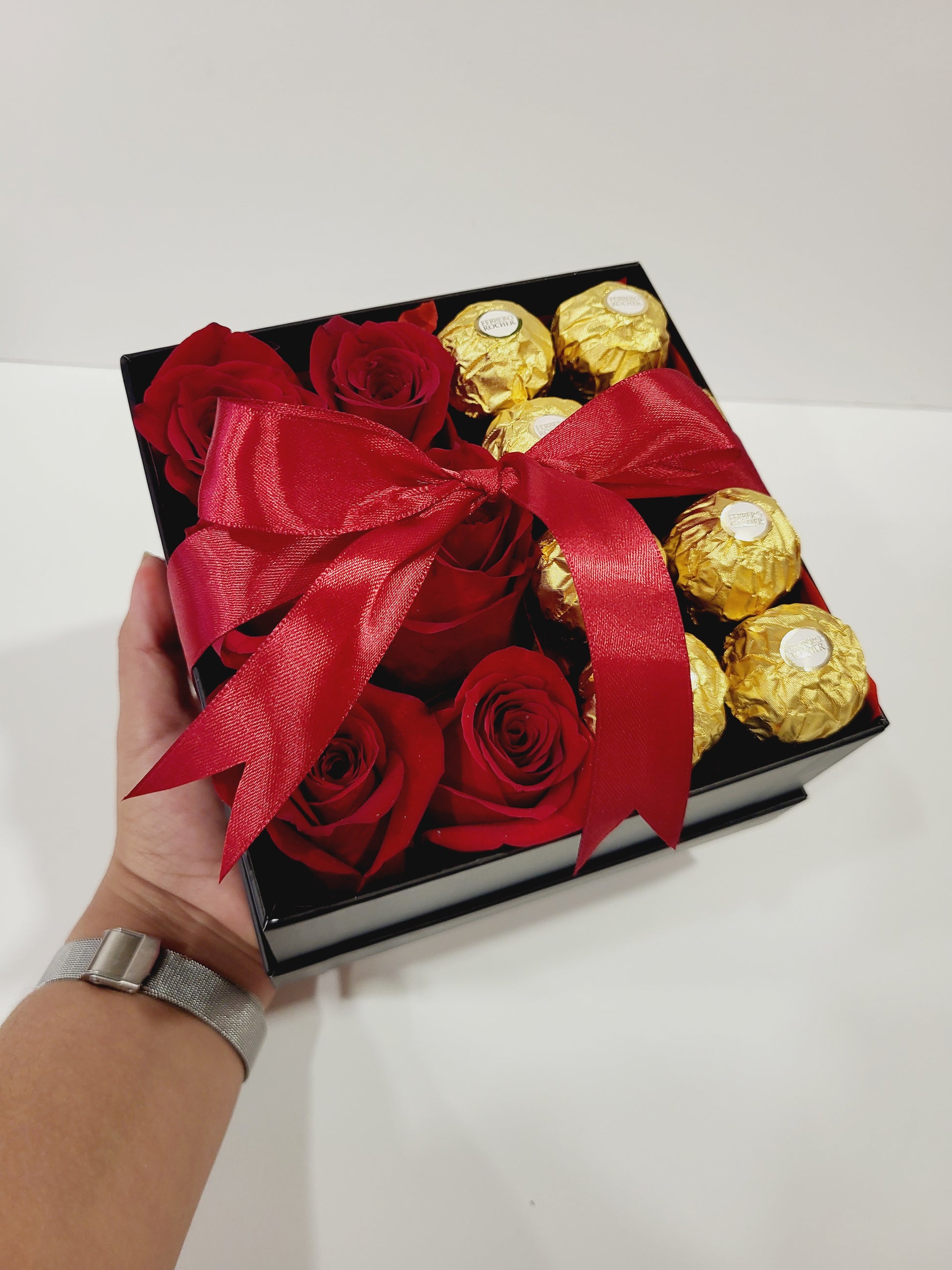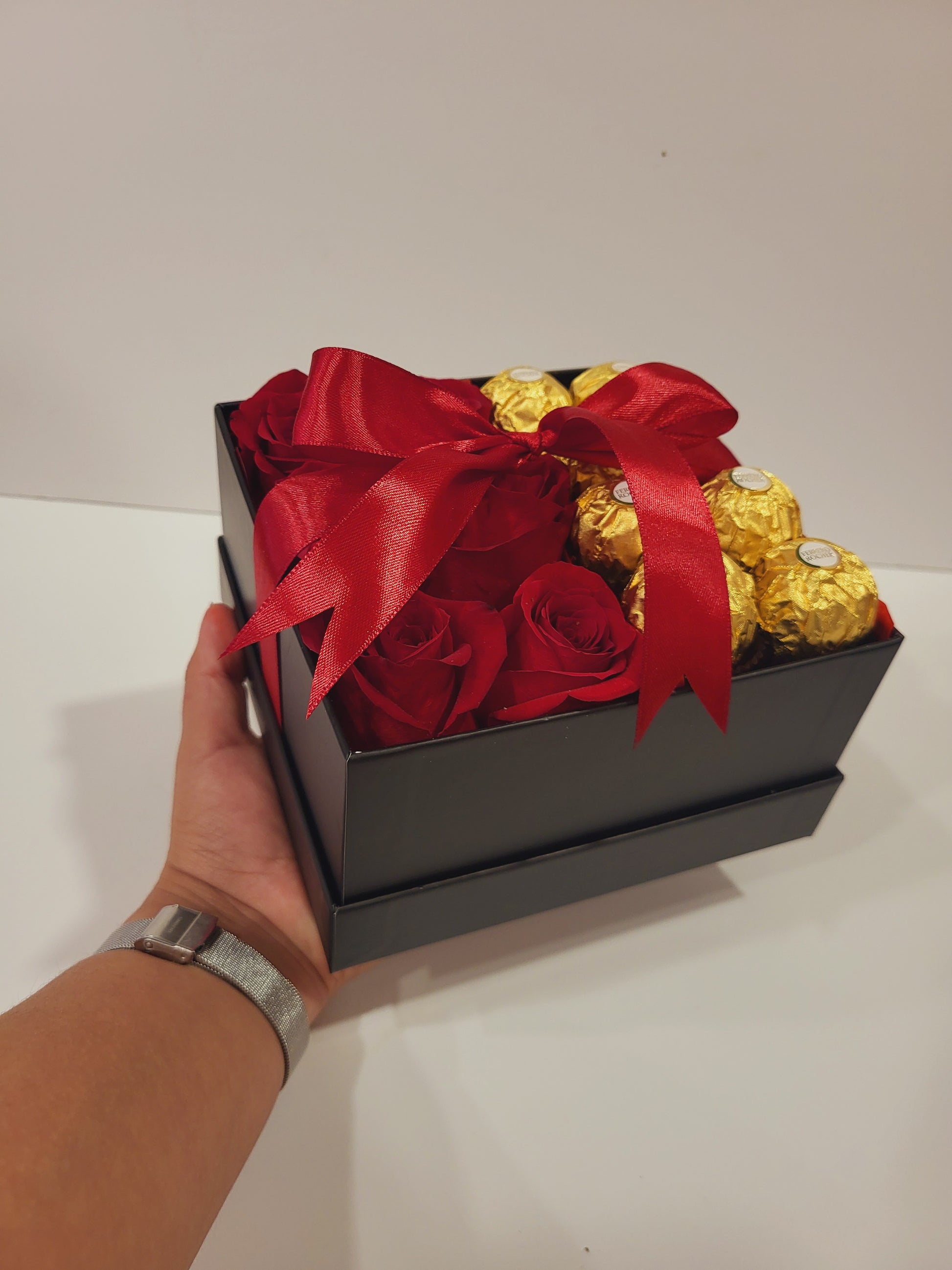 Un dulce regalo con un toque de naturaleza. Celebra los momentos especiales con la elegancia de nuestras rosas y el sabor inigualable de Ferrero Rocher. ¡Disfruta de cada bocado y cada pétalo!